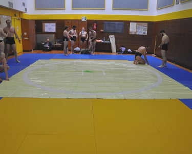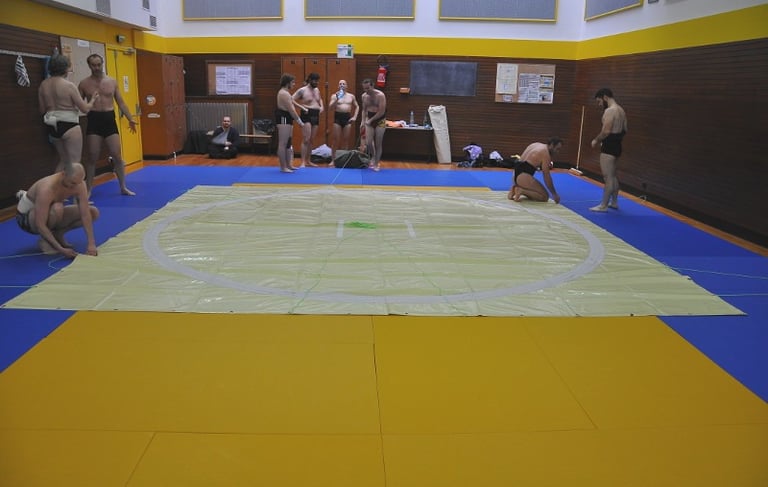 Nous vous recommandons de chercher un dojo : les tatamis seront déjà disponibles, et ça amorti les chutes (contrairement à l'argile utilisé au Japon) ce qui vous permettra de travailler vos projections. Rapprochez vous des clubs de lutte ou d'arts martiaux près de chez vous, vous pourrez peut être négocier un créneau et un coin de dojo qu'ils n'exploitent pas pleinement.